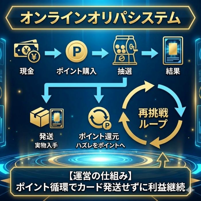 オンラインオリパの正体は、カード販売の皮をかぶった「高度に設計されたデジタルくじ」です。