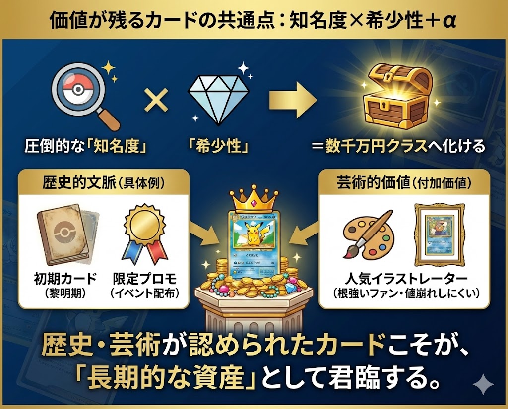 ただレアなだけでなく、歴史的な文脈や芸術的な価値が認められたカードこそが、長期的な資産として君臨し続けるのです。